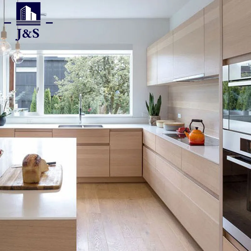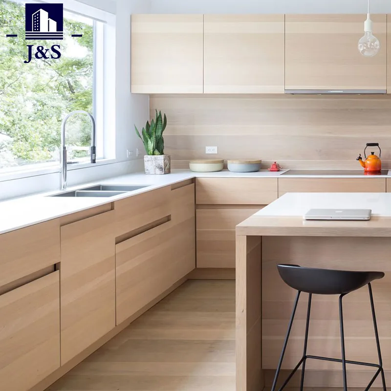 Le venature chiare del legno di questo mobile da cucina, così come i mobili da cucina bianchi sopra, rendono la cucina più pulita e ordinata. Inoltre, il mobile da cucina ha un'atmosfera casalinga che ti mantiene di buon umore mentre cucini in cucina. Il mobile da cucina in vendita ha una potente funzione di stoccaggio e lo spazio di stoccaggio può essere visto ovunque, in modo che i tuoi utensili da cucina possano essere ben posizionati. Oltre al colore e alla forma mostrati qui, puoi anche personalizzare il tuo nuovo mobile da cucina con forme o colori diversi in base alle tue esigenze. Sentiti libero di contattare il nostro esperto per ottenere subito un bel mobile da cucina personalizzato!