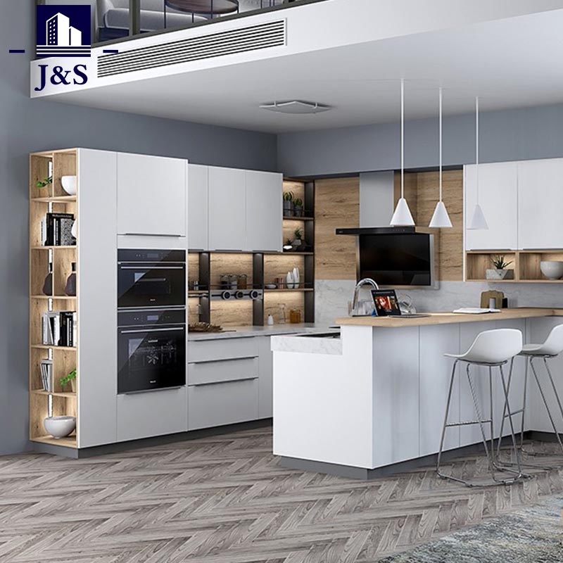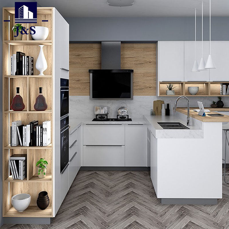 J&S fornisce armadi Kichen già pronti, questo è un design da cucina a forma di U. J&S è specializzato in armadi da cucina, armadi, armadi su misura per progetti abitativi con prezzi competitivi e servizio flessibile.